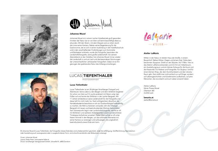 Der Foto Kalender Arlberg 2025 begleitet dich durch das ganze Jahr und lässt dich an jedem Tag einen Moment der Ruhe und Inspiration erleben. Ob als Geschenk für einen geliebten Menschen oder als persönliche Belohnung – dieser Kalender weckt Begehrlichkeit und lässt Emotionen hochkommen. Dieser einzigartige Kalender präsentiert zwölf der schönsten Fotografien von © Johannes Muxel & Lucas Tiefenthaler.